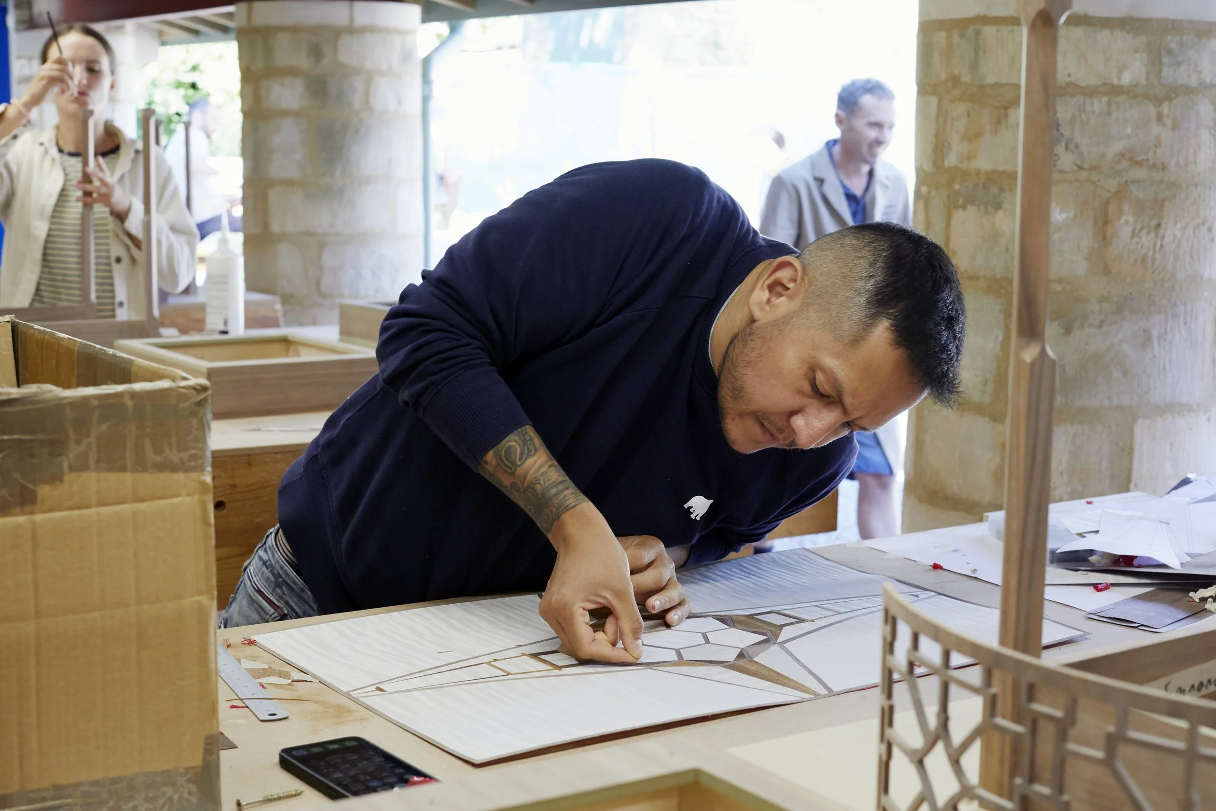 Along with practical skills students learn about design, pricing and selling work and professional practice. Past summer schools have included sessions taught by specialist guest tutors on leather work, high gloss polishing and French polishing. In addition, students have had tours of Dumfries House, Highgrove Gardens and local landmarks to view craft work and inspire marquetry design. The Summer School took a break during the pandemic and was run again in July 2022 in its new home at Highgrove Gardens.